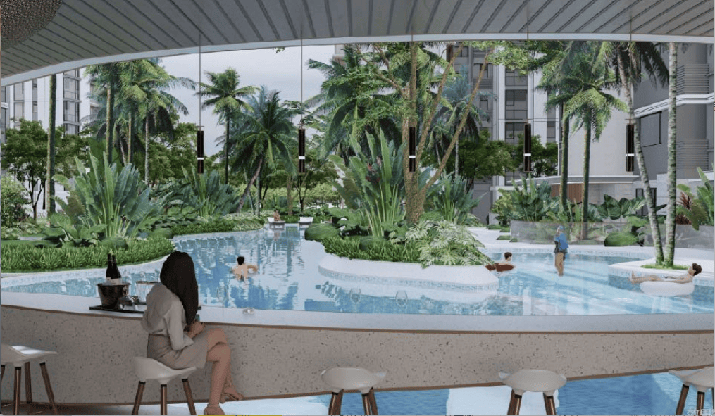 项目配备620㎡全龄泳池、健康跑道、花圃拉伸空间、白叟健身区、半户外活动健身区、休闲瑜伽区等场合,
