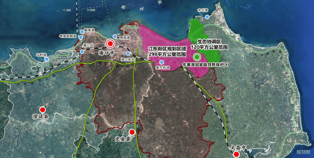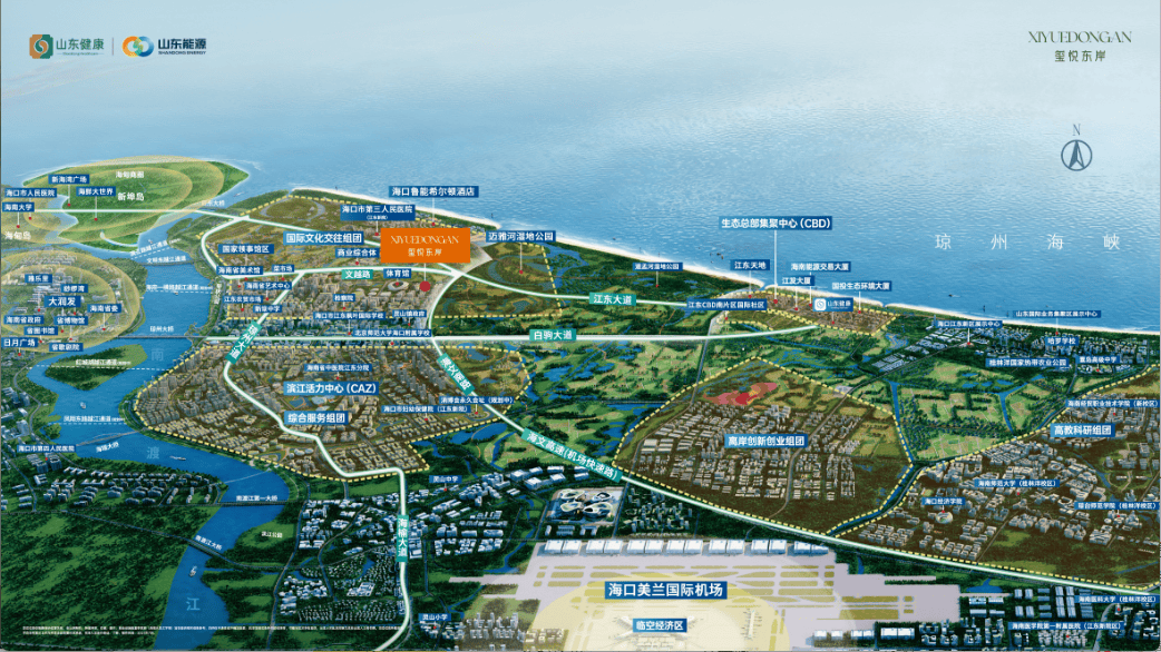 海口江东新区由地方间接摆设,200米通过江东大道约10分钟内达到江东CBD商务区