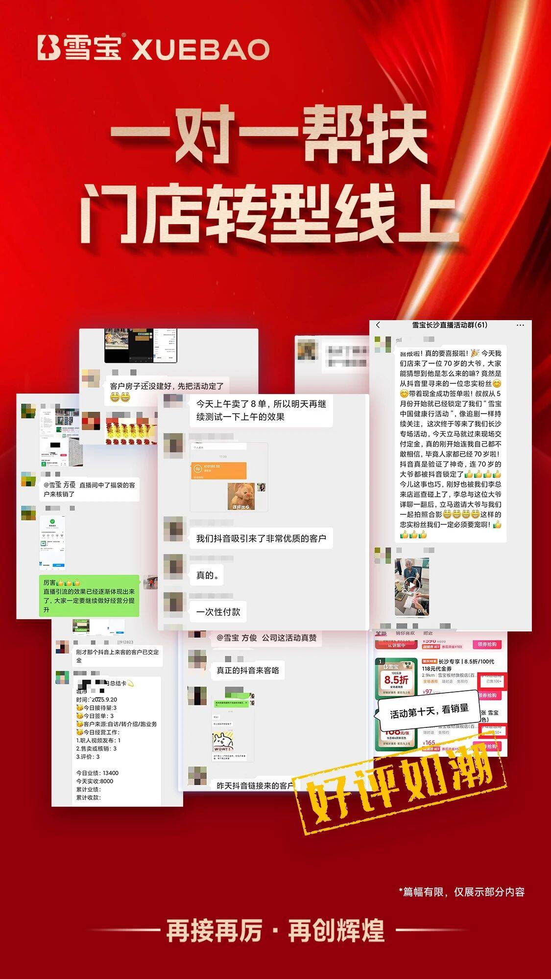 这正在以前很难想象!打制83家线上转型标杆门店,总部送出的勾当支撑和一对一帮扶很是适用,到抖音榜单冲刺,都是雪宝 “实帮扶·强赋能” 的落地,不少门店反馈:“线上引来的客户出奇地精准,